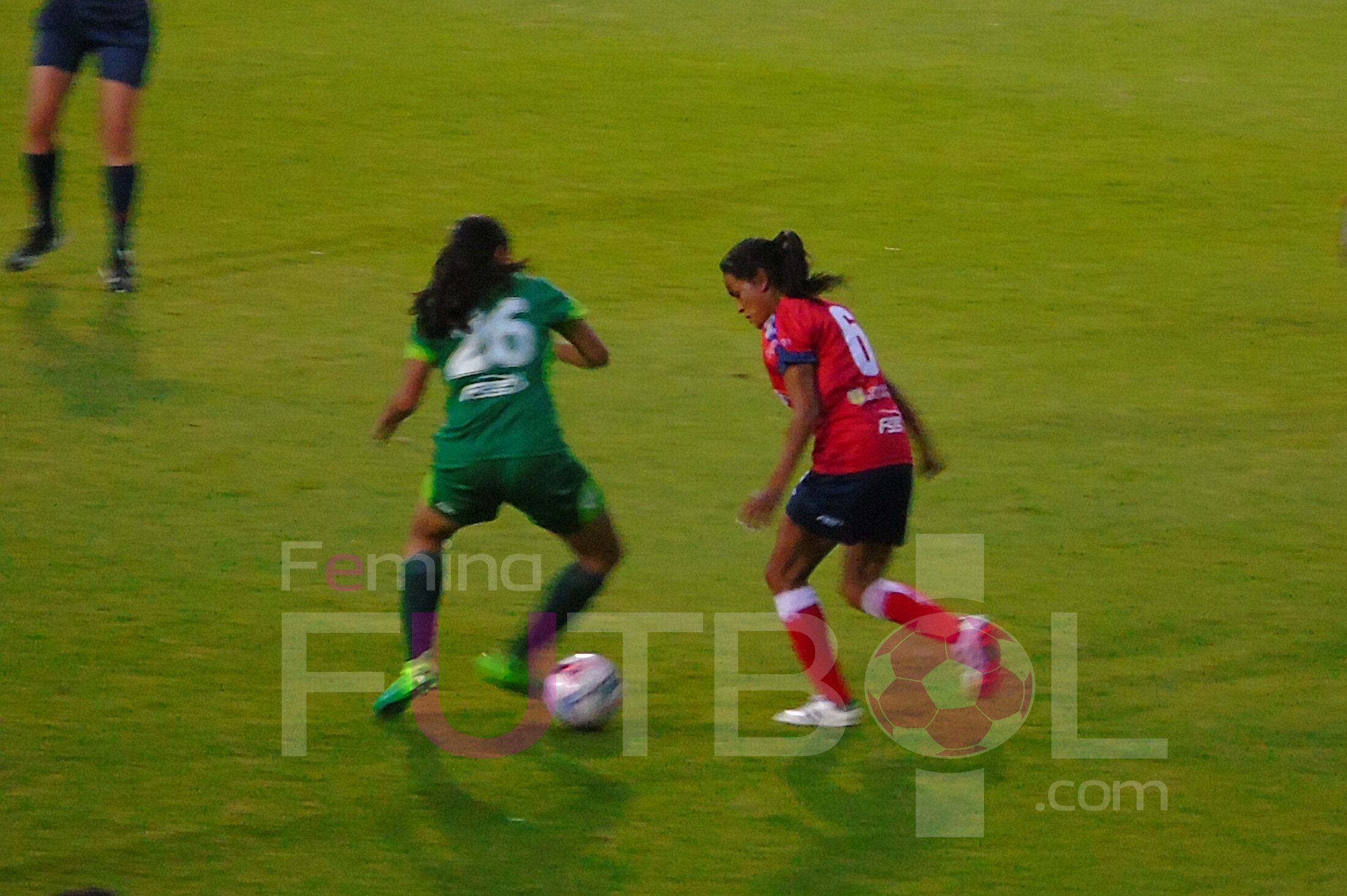 La encargada del cobro para las locales fue Estefanía Cardona, quien envió el balón al palo derecho, pero Karen Murillo llegó y atajó el balón para ahogar el primer gol de la tarde. A partir de ahí, Fortaleza recuperó confianza y empezó a tejer su juego por las bandas, mientras que Equidad utilizó el medio para hacer daño.