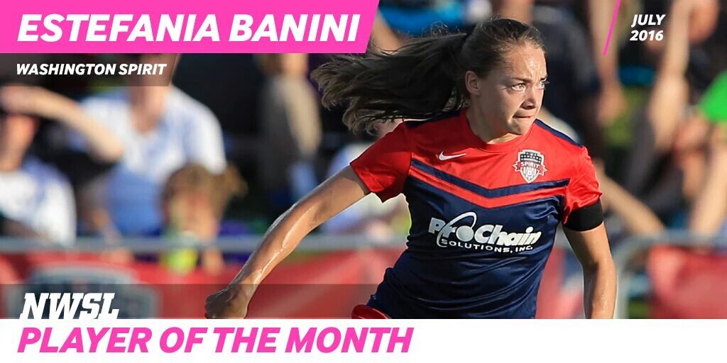 La centrocampista argentina del Washington Spirit, Estefania Banini, fue escogida por la Asociación de Medios de la liga femenina de fútbol de Estados Unidos, NWSL, como la mejor jugadora de julio de la temporada 2016.